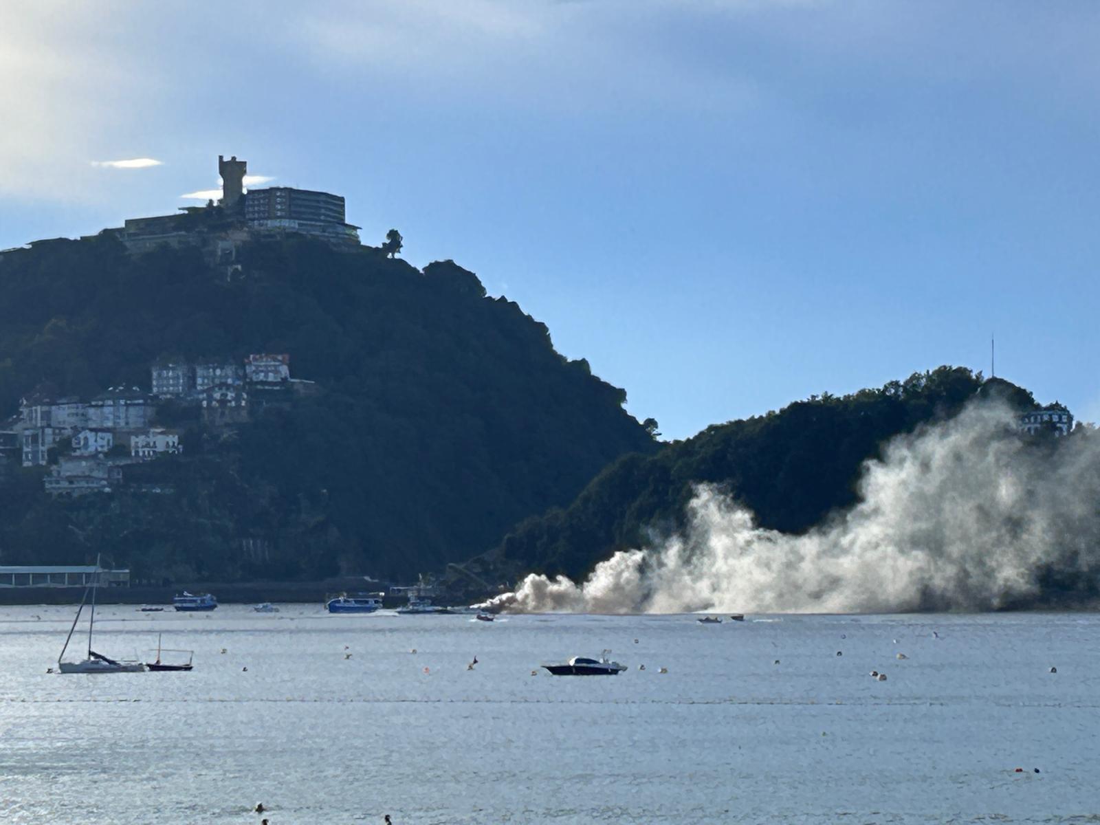 Una embarcación de, aparentemente, pequeñas dimensiones, ha comenzado a arder este miércoles pasadas las 17.30 horas junto a la Isla Santa Clara levantando una intensa humareda visible desde las playas de Ondarreta y la Concha, así como de otros puntos de Donostia. Dos tripulantes han sido rescatados por embarcaciones cercanas después de que se alertara a Salvamento Marítimo y a la Cruz Roja y de que también fueran movilizados los bomberos y la patrullera ‘Río Lea’ de la Guardia Civil. (Vídeo de A.V.)