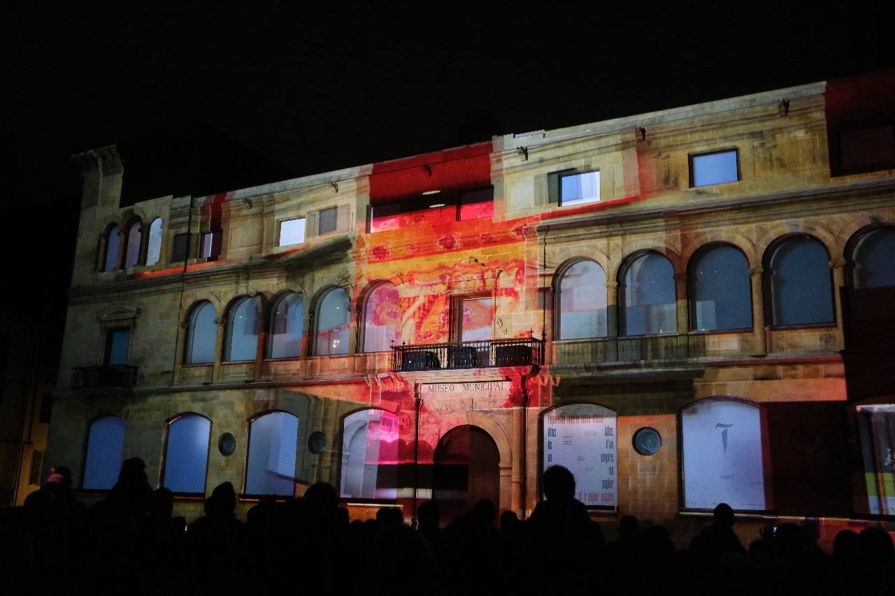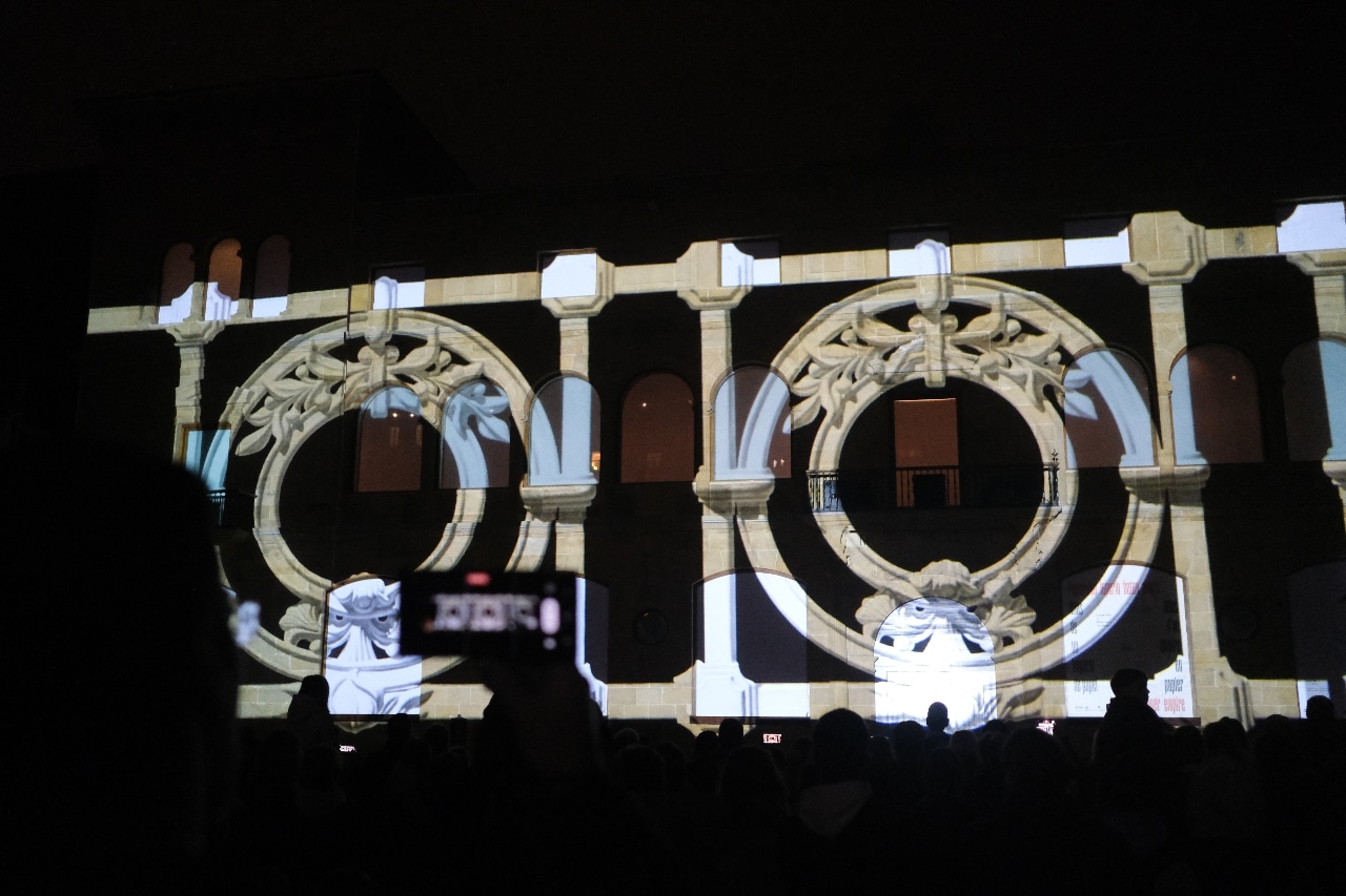 Hoy se ha desvelado una de las imágenes de esta Navidad donostiarra, la del videomapping sobre la fachada del Museo San Telmo, que hoy por primer día ha congregado a un buen número de curiosos. Está enmarcado en la capitalidad donostiarra de la Navidad (compartida con Génova) y la presentación ha contado con parte del elenco de la serie ‘Goazen’.