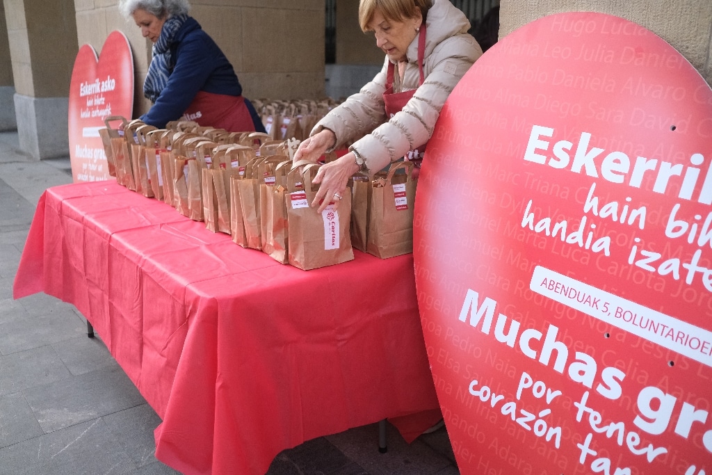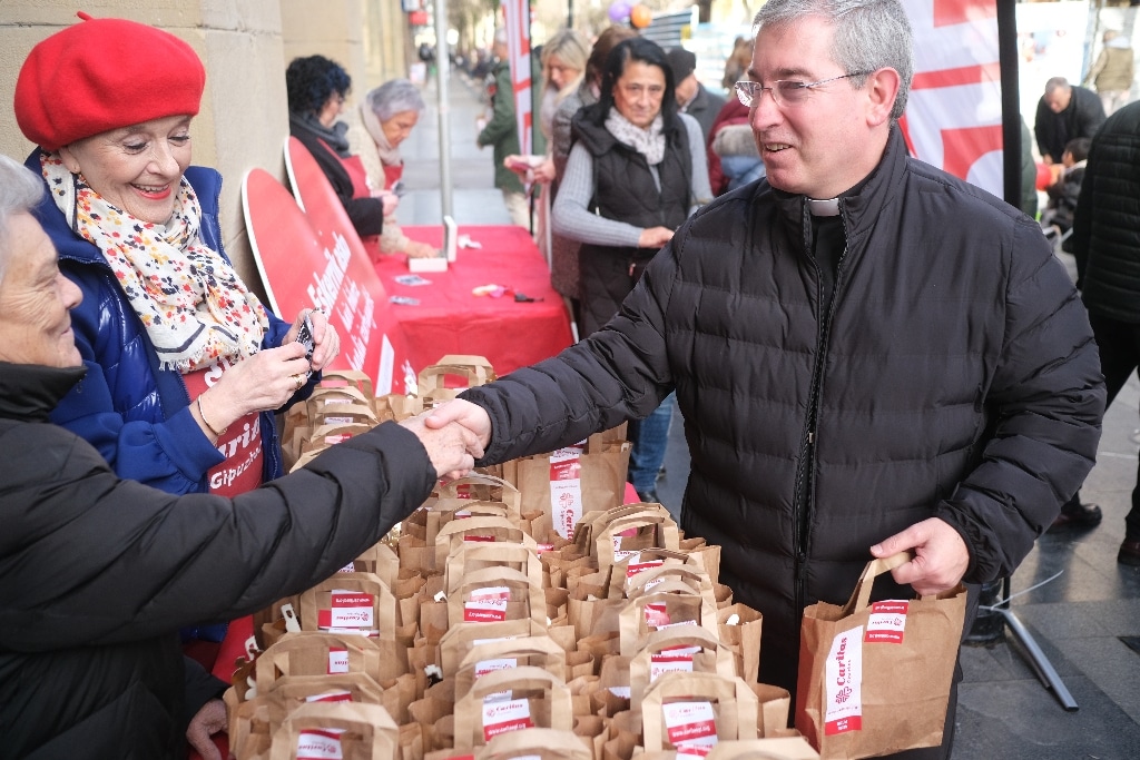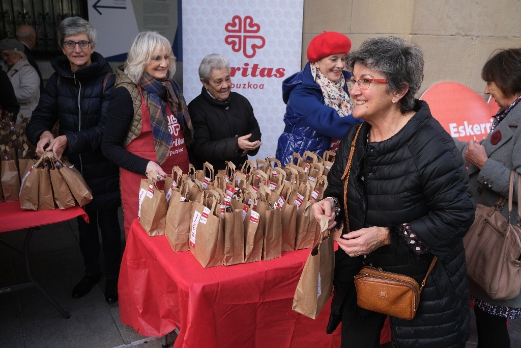 Los donostiarras no faltan a su cita con el Roscón Solidario de Cáritas en la plaza Gipuzkoa. Hoy tampoco lo han hecho y desde las 10 han empezado a repartirse a toda velocidad las 1.500 raciones de rosco con chocolate que para las 13.30 horas estaban agotadas. Además hoy han contado con el Obispo Fernando Prado, que asumió el cargo el pasado 17 de diciembre. (Cáritas recuerda que quienes no quienes no han podido acudir al Roscón Solidario de CARITAS GIPUZKOA puden colaborar comprando su ración solidaria virtualmente: Bizum 38029).