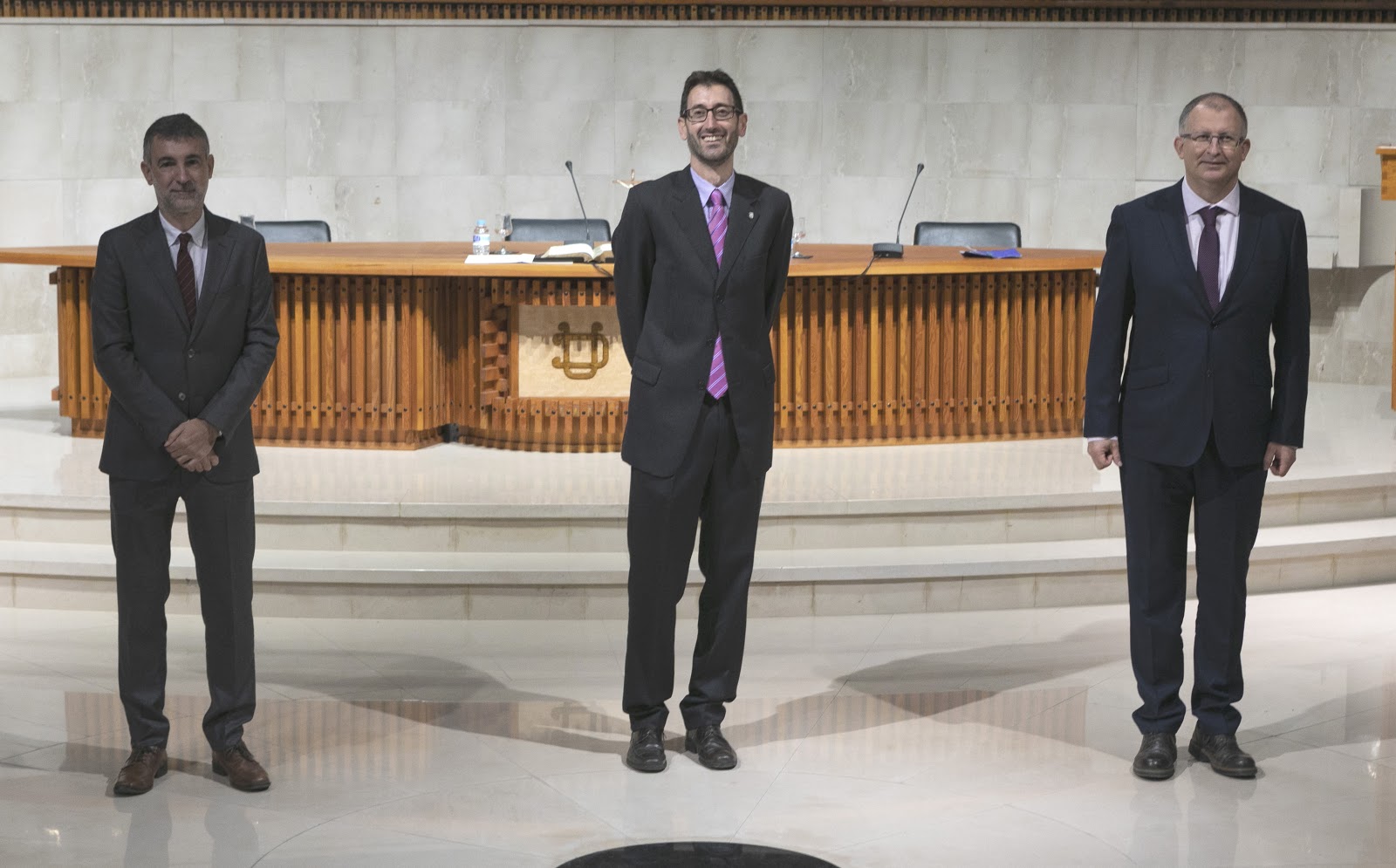 La Universidad de Deusto ha celebrado hoy la toma de posesión del nuevo vicerrector del campus de San Sebastián Xabier Riezu, el vicerrector de Estrategia Universitaria Eduardo Ruiz Vieytez y el decano de la Facultad de Ciencias Sociales y Humanas, Javier Arellano. Dos nuevos vicerrectores y un nuevo decano que asumen sus responsabilidades en un tiempo marcado por la pandemia.